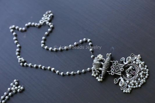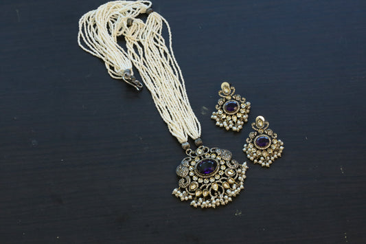 Dual Tone Victorian Necklace Set - Fuchsia pink