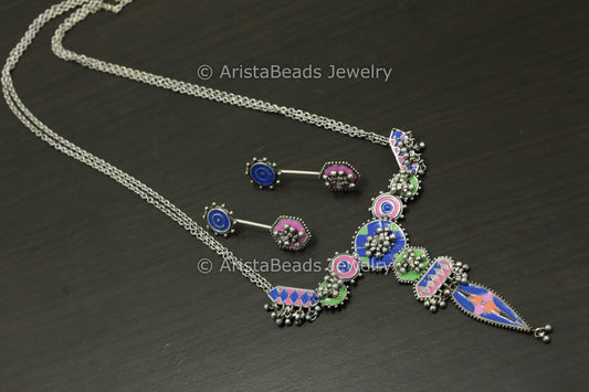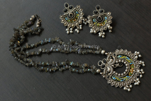 Enamel Oxidized Necklace Set - Labradorite Beads