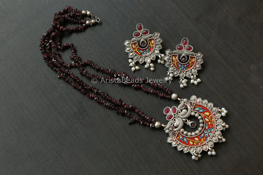 Enamel Oxidized Necklace Set - Carnelian Beads