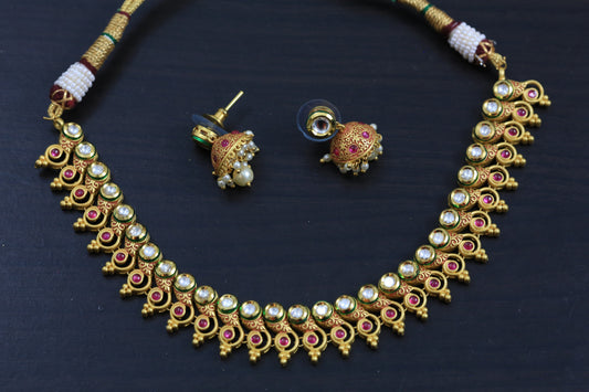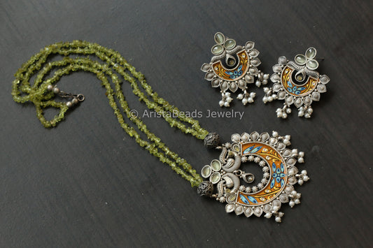 Enamel Oxidized Necklace Set - Moonstone Beads