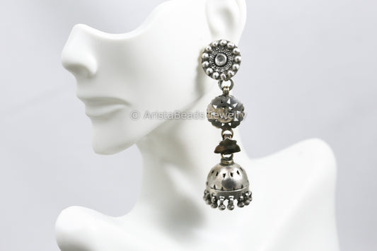Ethnic Long 925 Sterling Silver Earrings