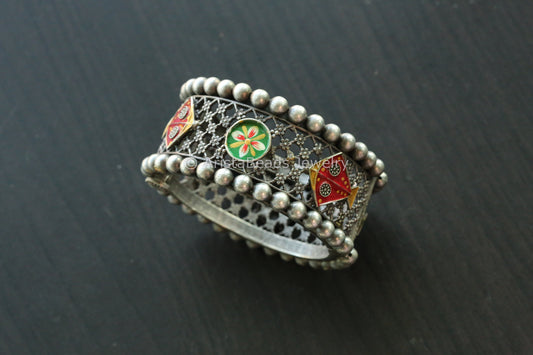 Enamel Oxidized Silver Look Bangle - Green Red