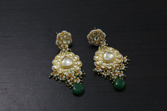 Fine Pachi Kundan Chandbaali - Aventurine Drops