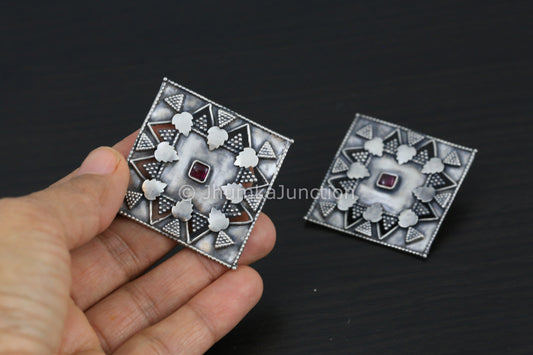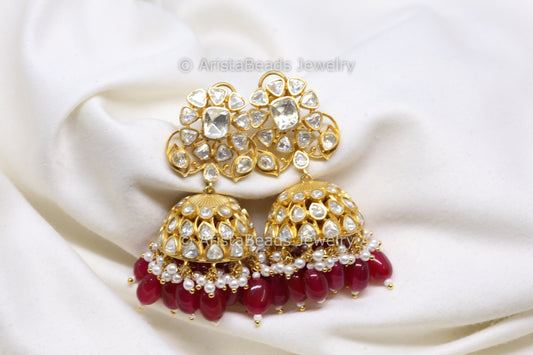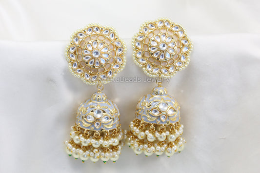 Extra Large Uncut Kundan Enamel Jhumka - Gray