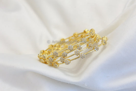 Gold Solitaire CZ Bangle Set ( Set of 4)