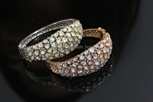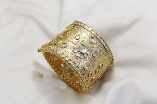 Premium Uncut Polki Kundan Wide Bangle (Yellow Pota)