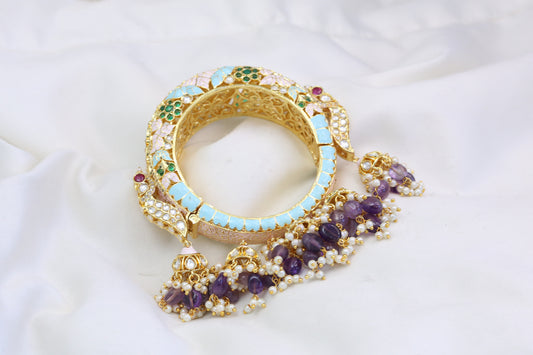 Uncut Kundan Enamel Jhumka Bangle - Blue (B101-19)