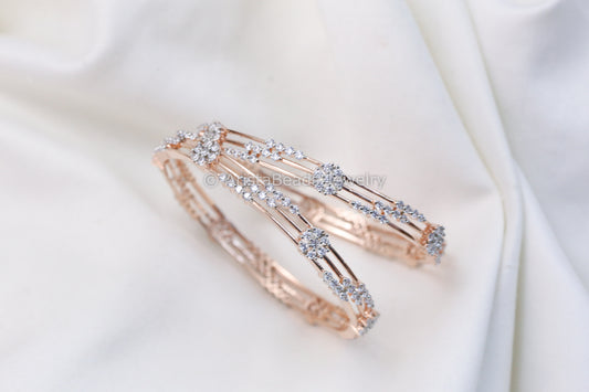 Rose Gold Finish Contemporary CZ Bangles Set (2.4 & 2.6)