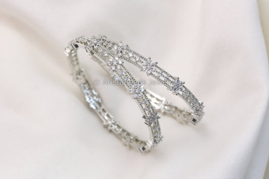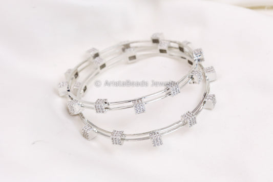 Silver Finish Contemporary CZ Bangles Set (2.4 & 2.6)