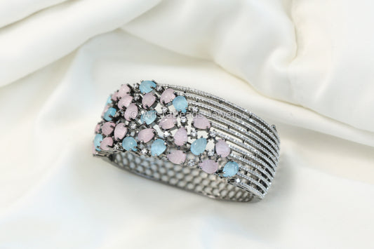 Boutique CZ & Carved Stone Bracelet (Openable) - Blue Pink