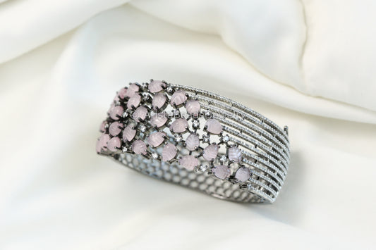 Boutique CZ & Carved Stone Bracelet (Openable)- Pink