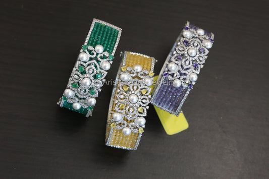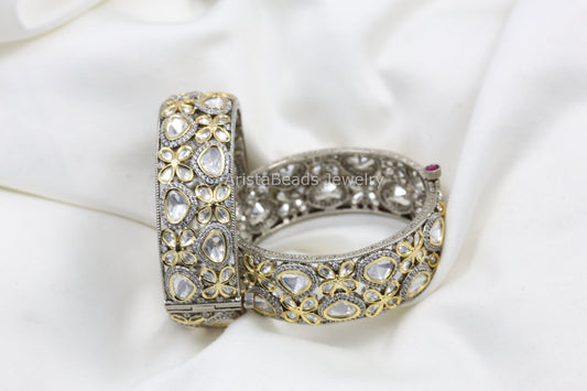 Jadau Kundan Silver Look Alike Bracelets ( Openable)