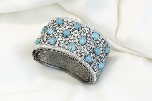 Wide CZ & Carved Stone Bracelet (Openable)- Aqua Victorian