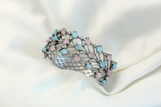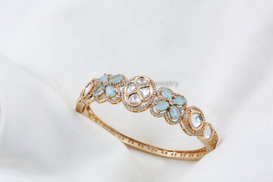 Clear & Blue Uncut Polki and CZ Bracelet (Openable)