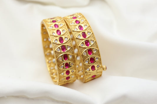 Gold Uncut Polki & Doublet Bracelet (Openable) - Pink
