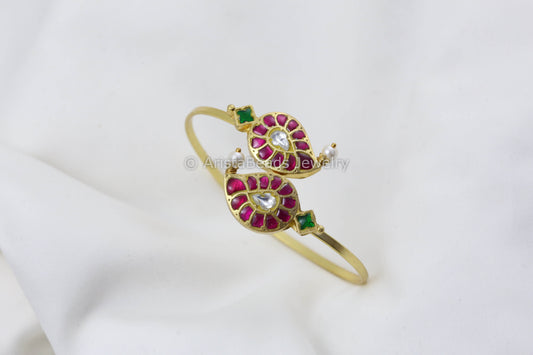 Adjustable Jadau Kundan Paisley Bracelet - Ruby