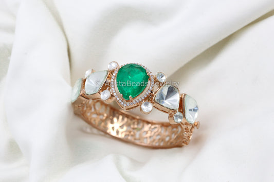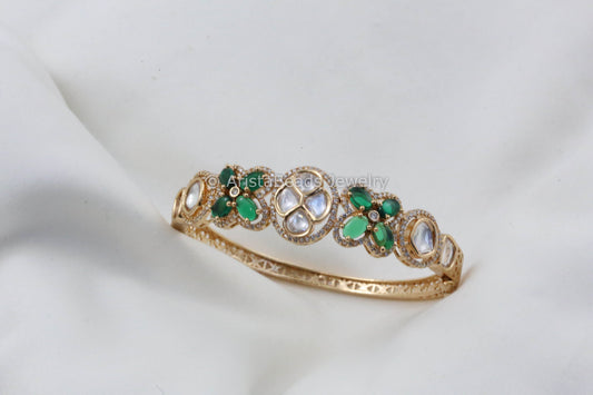 Clear & Green Uncut Polki and CZ Bracelet (Openable)