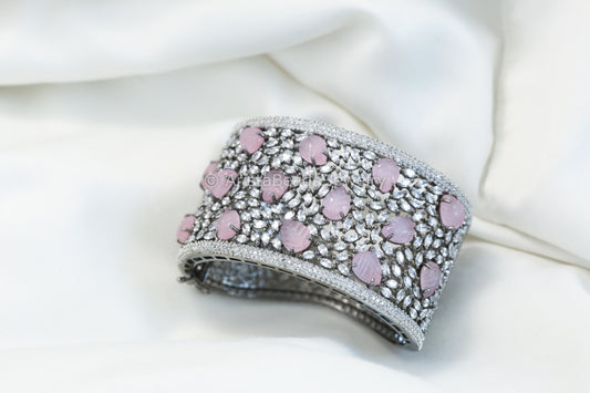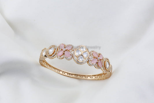 Clear & Pink Uncut Polki and CZ Bracelet (Openable)