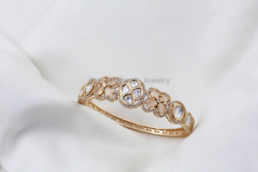 Clear & Peach Uncut Polki and CZ Bracelet (Openable)