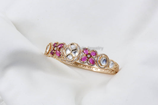 Clear & Ruby Uncut Polki and CZ Bracelet (Openable)