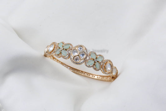 Clear & Mint Uncut Polki and CZ Bracelet (Openable)