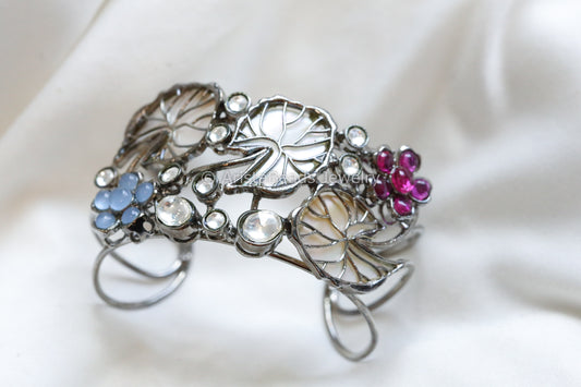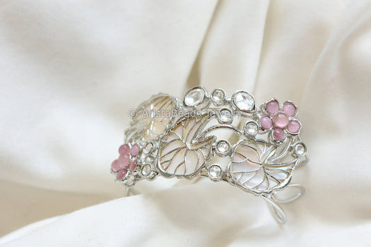 MOP & Kundan Silver Bracelet ( Adjustable)