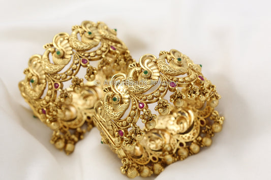 Antique Gold Peacock Ghungroo Bangle (Openable)