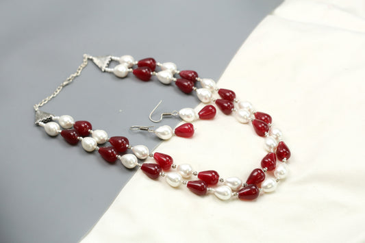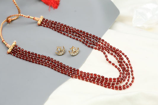 Contemporary 2 Strand Beaded Necklace Set - Dark Red