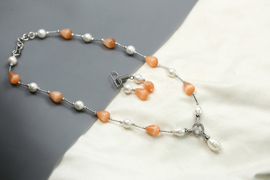 Contemporary Beaded Necklace Set - Peach