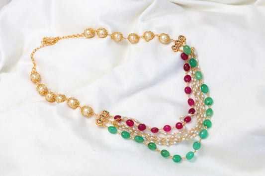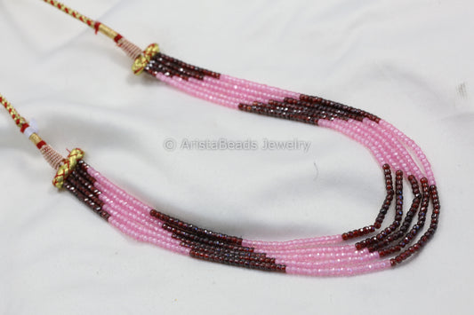 5 Strand Hydro Bead Necklace - Pink Maroon