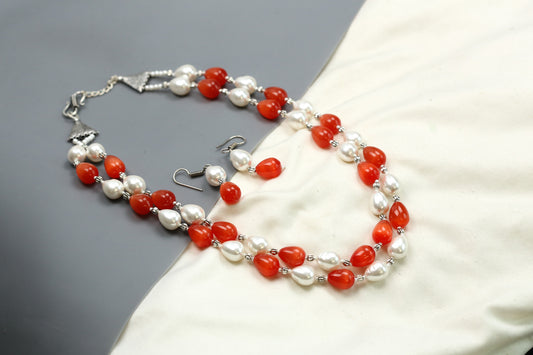 Contemporary 2 Strand Beaded Necklace Set - Red