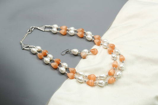 Contemporary 2 Strand Beaded Necklace Set - Peach
