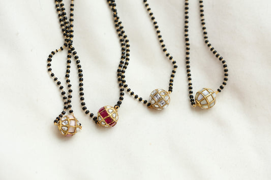 Jadau Ball Black Bead Necklace