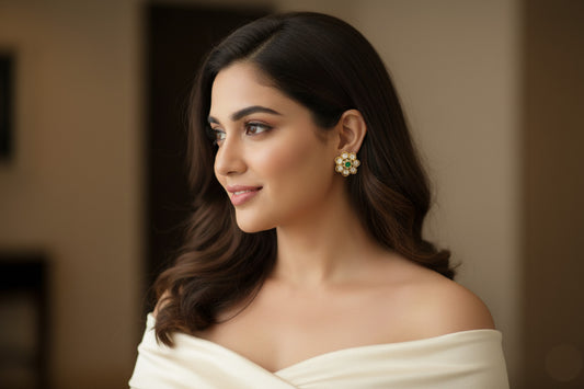 Aavni Real Moissanite & Pota Stones Studs - Green