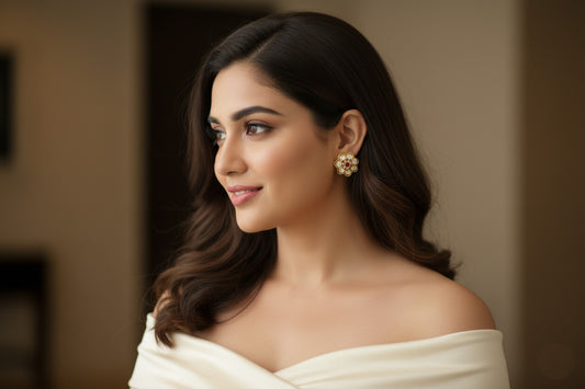Aditi Real Moissanite & Pota Stones Studs - Clear