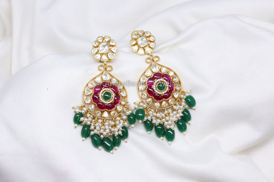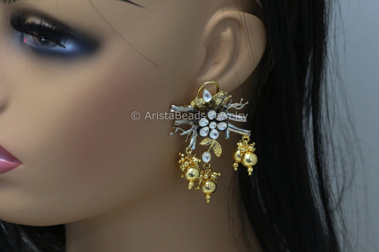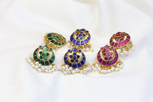 Sahana Antique Gold Jadau Kundan Jhumka - Navratan