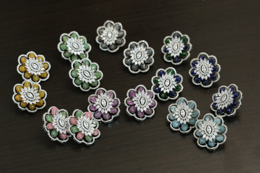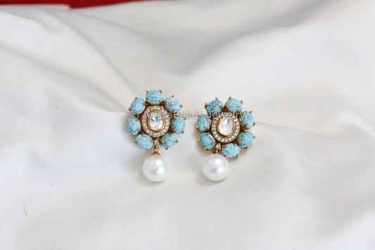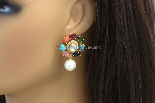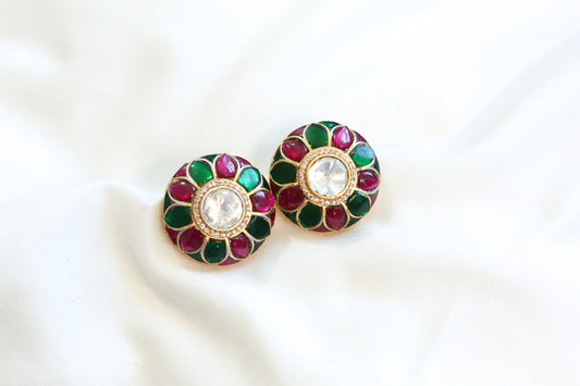 Uncut Moissanite Polki & Jadau Kundan Studs - Navratna