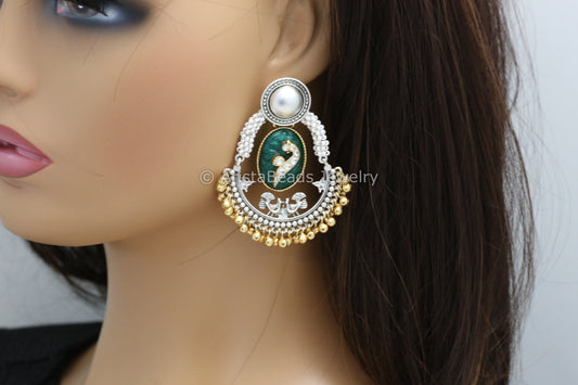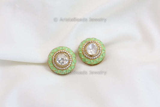 Uncut Moissanite Polki & Jadau Kundan Studs- Ruby Green