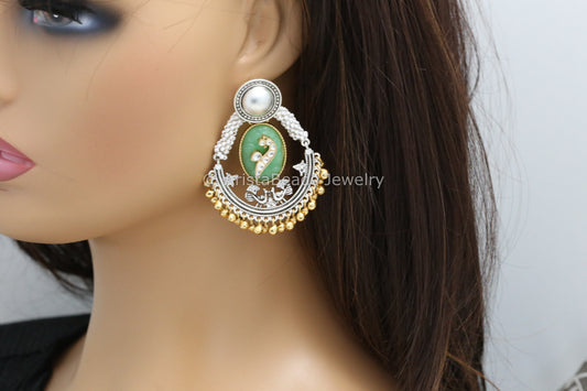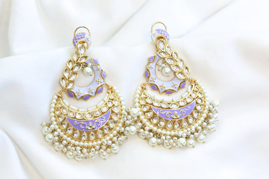 Jadau Polki Enamel Chandbaali -Powder Blue