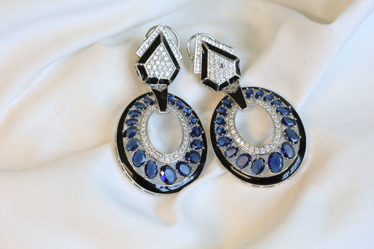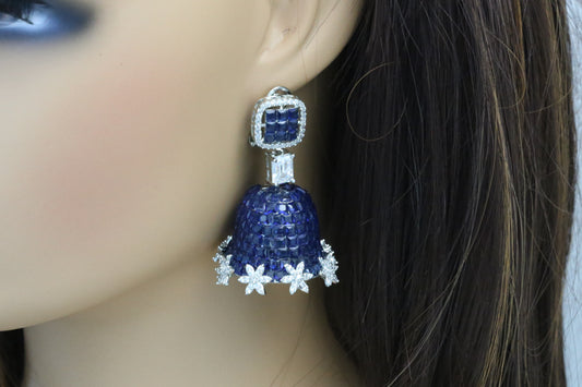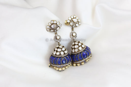 Real Moissanite Victorian Jhumka - Blue Kundan