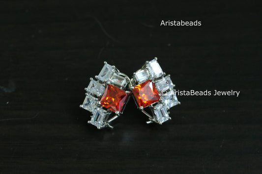 Large Real Moissanite, Micro CZ & Doublet Studs - Red