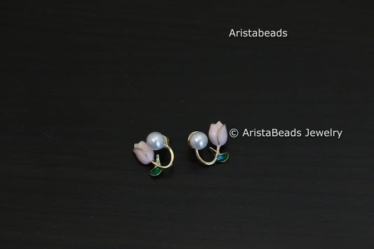 Next To Real Large Moissanite Polki & Jadau Stone Studs - Brown