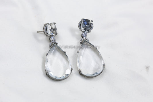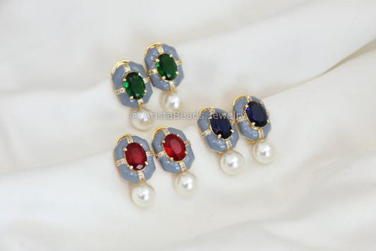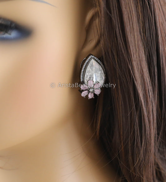 Next To Real Large Moissanite Polki & Jadau Stone Studs -Blue