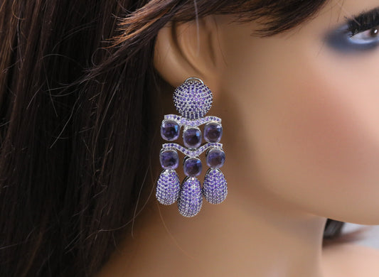 Micro Pave CZ & Doublet Earrings (102-10)- Purple