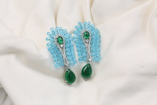 Shanaya Premium CZ & Crystal Studs (102-23) - Aqua Blue & Green
