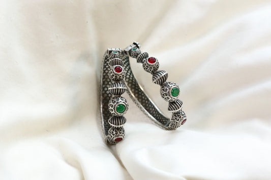 Mahi Silver Looka Alike Bangle - Green Red