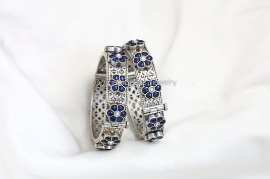 Pacheli Silver Look Kundan Bangle Set (2.6 Openable)