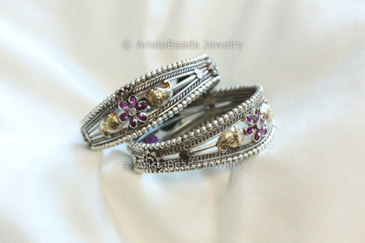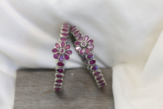 Kemp Silver Finish Bangle Set (2.4) -Ruby