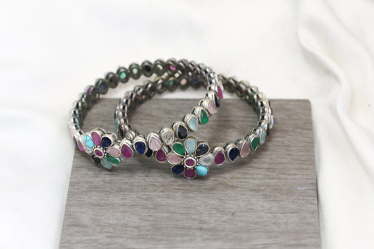 Kemp Silver Finish Bangle Set (2.4) -Turquoise Ruby