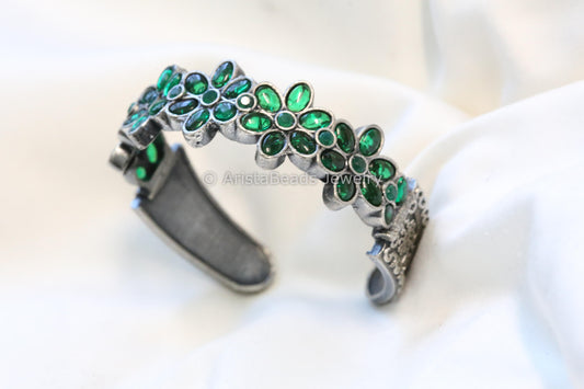 Kemp Silver Finish Bangle Set (2.4) - Green
